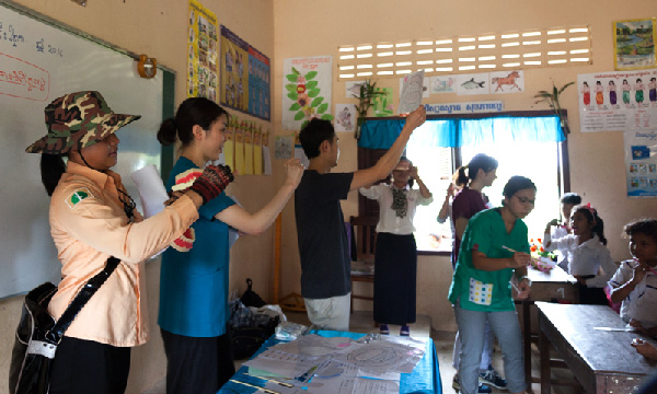 臨床検査技師を養成する「東武医学技術専門学校」の生徒さんたちは、シェムリアップにあるアンコール共生病院でボランティア健診を行いました。受診の対象は、近くの高校に通う生徒たちです。